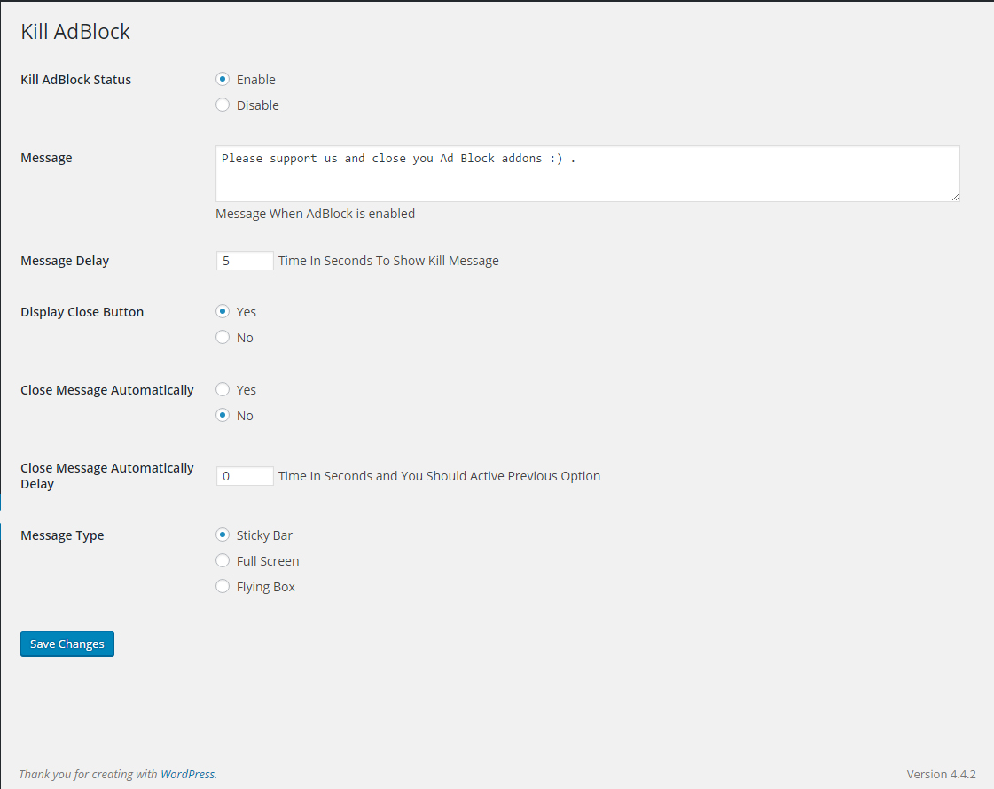 Kill AdBlock is wordpress plugins which detect nasty ad blockers and display custom message to user if ad block addons is enabled.